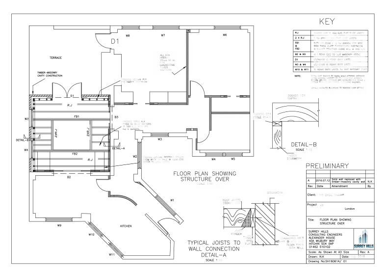 Key Tasks: One of the interesting projects to have extension at upper-storey flat without disturbing lower floor tenants. Load path was carefully chosen to justify further loads over existing foundations. Our intension was to choose such a path which distribute load evenly to avoid concentrated load at one point. Couple to upstand composite beams were introduced to support upper masonry cavity at the extension. Lateral stability was insured by running PFC over inner leaf to provide a diaphragm action.