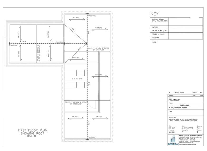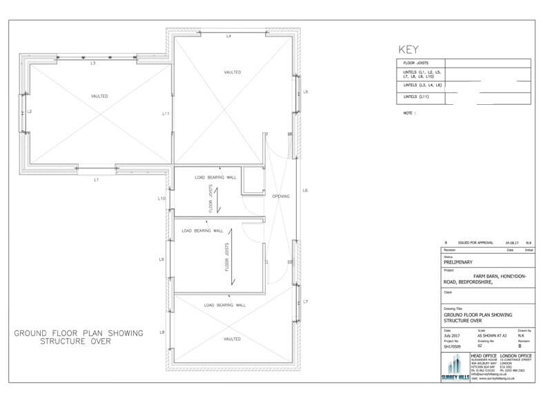 Key Tasks: Conversion of existing farm barn to a two-storey dwelling & extension. The key task was to adopt a design strategy which is not only economical but also practical and fulfil client requirement at the same time. The existing barn was built on a solid slab with a no or very little foundation hence underpinning solution was adopted where required. The rest of the job was straight forward with a ridge beam, floor joists and trimmers to suit site requirement.